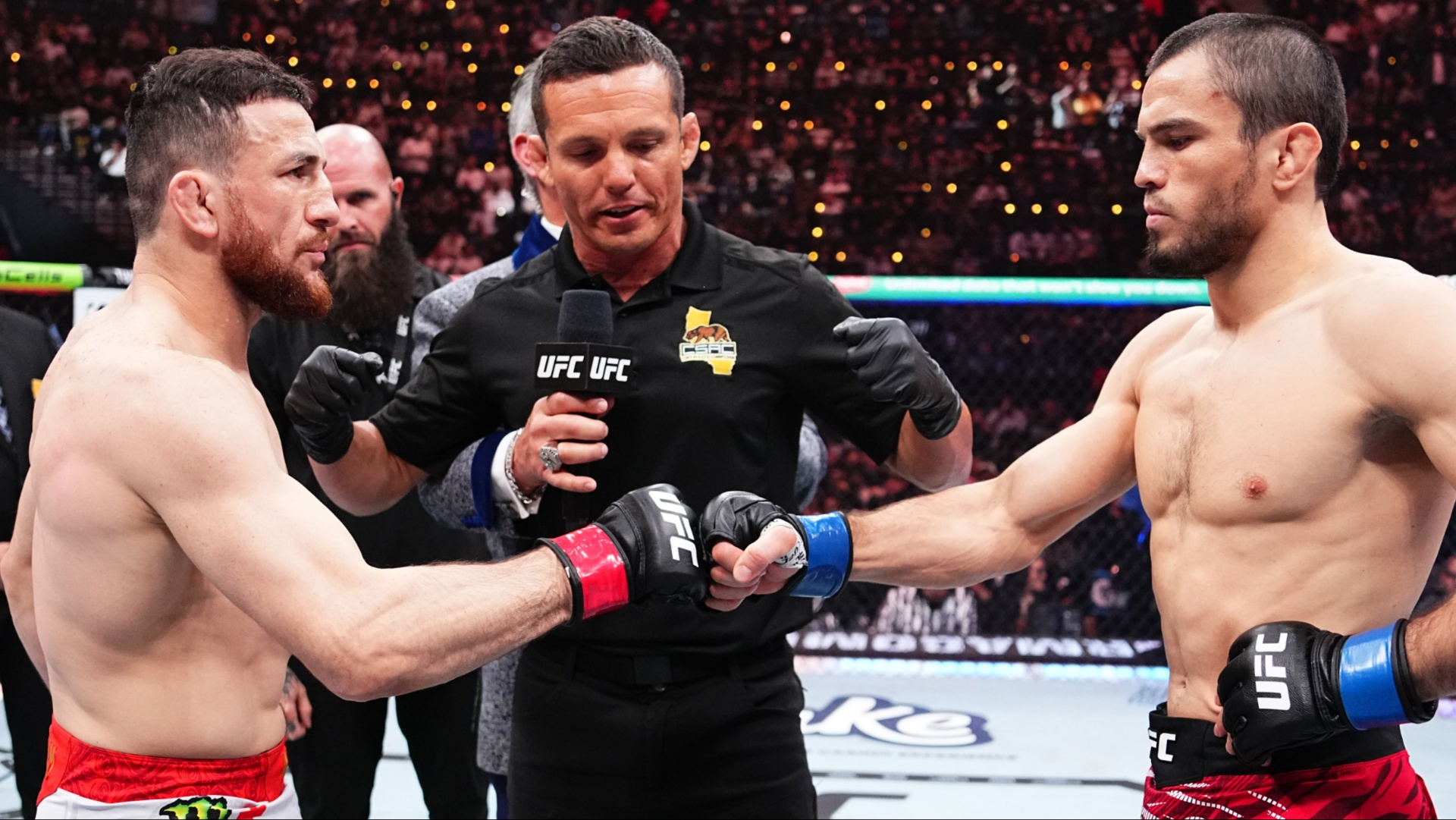 “Nuestra última pelea no fue así. Estaba controlando las cosas y gané sin tomar riesgos innecesarios o dolores de cabeza, pero no lo dejaré salir y salir del octágono esta vez. Lo romperé en el primer minuto y medio, luego lo arrastraré por el octágono por los 23 1/2 minutos restantes como un saco …